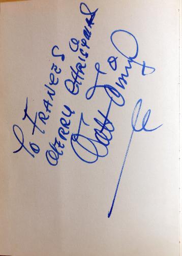 | The Art Of Animation -This book is from the early 1950's, so I believe the autographs are from the same time period. I have two of these books signed. What I like most is how they are signed so big and bold. The one to the left was signed for a relative of an employee. She sends a Christmas letter to her aunt and references a new movie she is working on that will be titled, Sleeping Beauty !!! She also details Walt's office with a drawing of how it was used. |