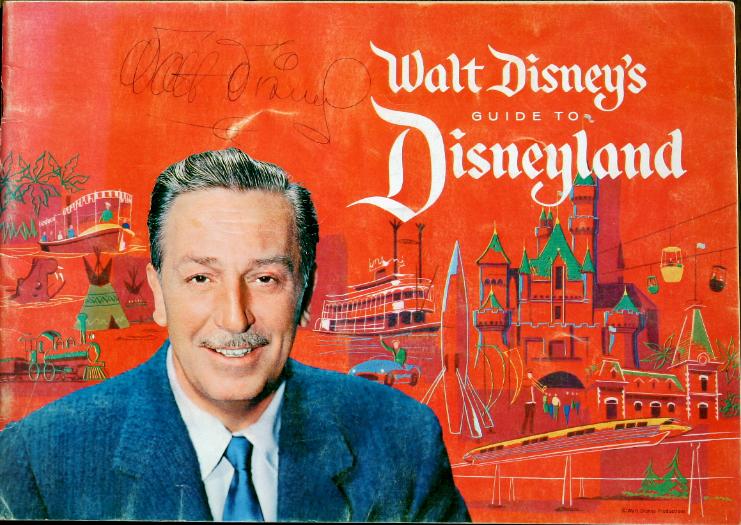 | 1961 Disneyland Guide - My favorite autographed items to collect are the things that have some connection to Disneyland. The Disneyland guides are great. Unlike my other guides, this one was signed on the front cover, and the autograph in pen is small and light. It is interesting to read thru the 28 page book. On page 26, it describes several rides and attractions in development, including the "Haunted House", "Rogues Gallery" (actually named Pirates of the Caribbean) and "Old New Orleans". |