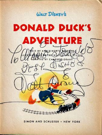 | Donald Duck's Adventure - I was once told that Walt Disney always traveled with these little 25 cent books, so that he could give autographs to fans that didn't have anything for him to sign. I don't know if that is true, because I rarely find these books with Walt Disney's autograph. |