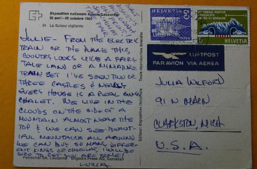 | This is another autograph that I was able to pick up as a result of the web site in early 2007. It is an interesting story. A woman was in Europe and attending the Paris Expo. She filled out the postcard detailing her travels. While walking around the Paris Expo, she saw Walt Disney and got him to autograph the front of the postcard. Interestingly the sphere in the postcard looks a little like the sphere at Epcot. Maybe this is where Mr. Disney got the inspiration. |