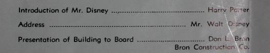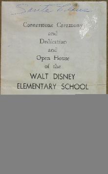 | One of the first autographs that "found me" after the web site went live in August 2006 is this very unique autograph that has become one of my favorite. The letter from the seller tells the whole story. "In October 1960 my sister and I happened to be the first two in line to meet Walt Disney. He had made the trip to Marceline, yet again to help the residents of his boyhood town. He was in town to dedicate our new Elementary School, The Walt Disney Elementary School." Something tells me very few of these programs are still around, and even fewer have such a wonderful autograph. This is really a great addition to my collection and to have been able to get it from the original recipient of the autograph, that actually met Walt Disney makes it even better. |